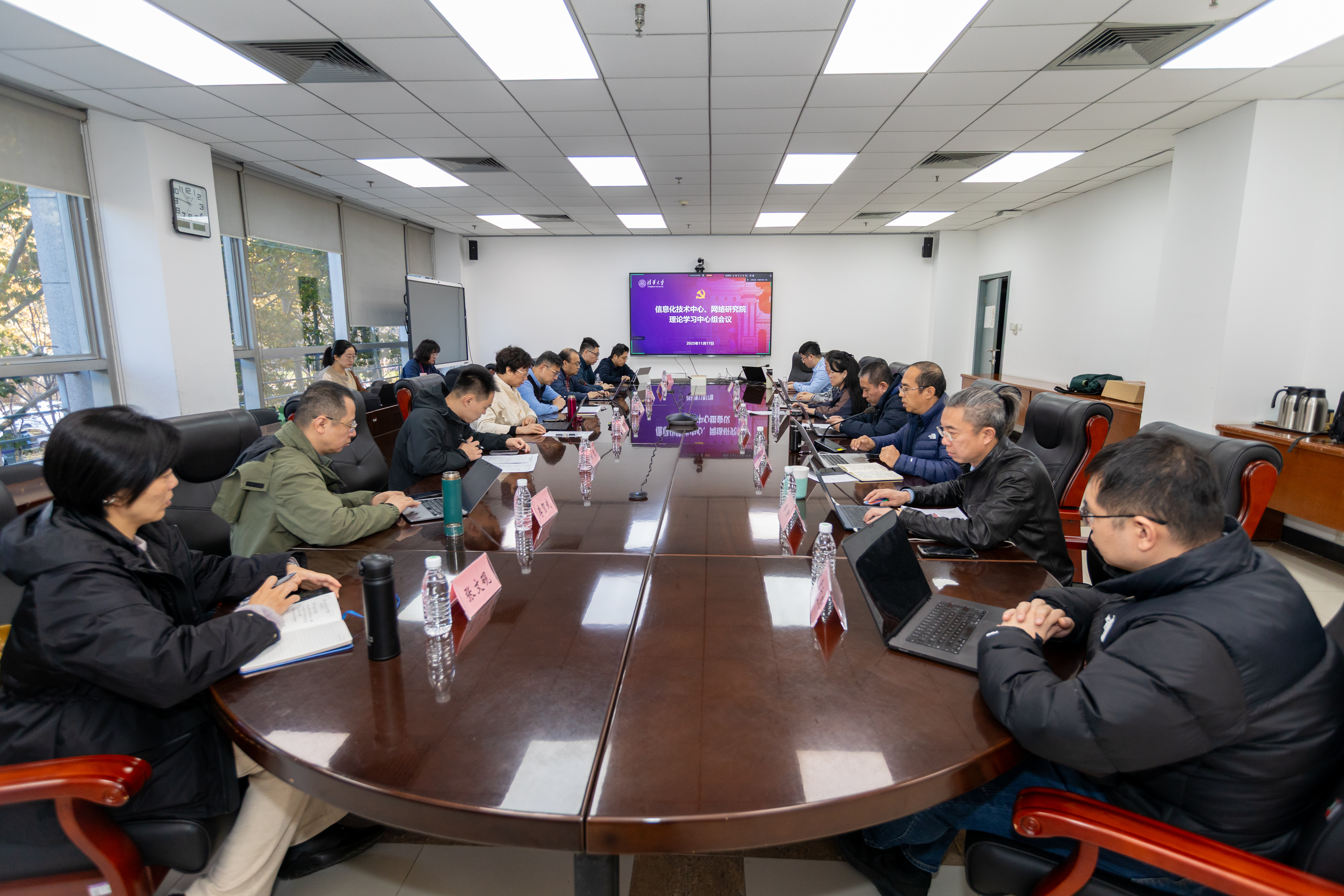 11月17日上午,校党委第四巡视组与信息化技术中心党委开展联学共建活动,此次活动包括专题学习党的二十届四中全会精神和参观清华大学网络空间安全态势感知中心。校党委第四巡视组组长郝永红、副组长张定及巡视组成员,信息化技术中心党委书记王继龙,党委委员、信息化技术中心主任、网络研究院院长徐明伟以及理论学习中心组成员共计20余人参加活动。活动由党委书记王继龙主持。