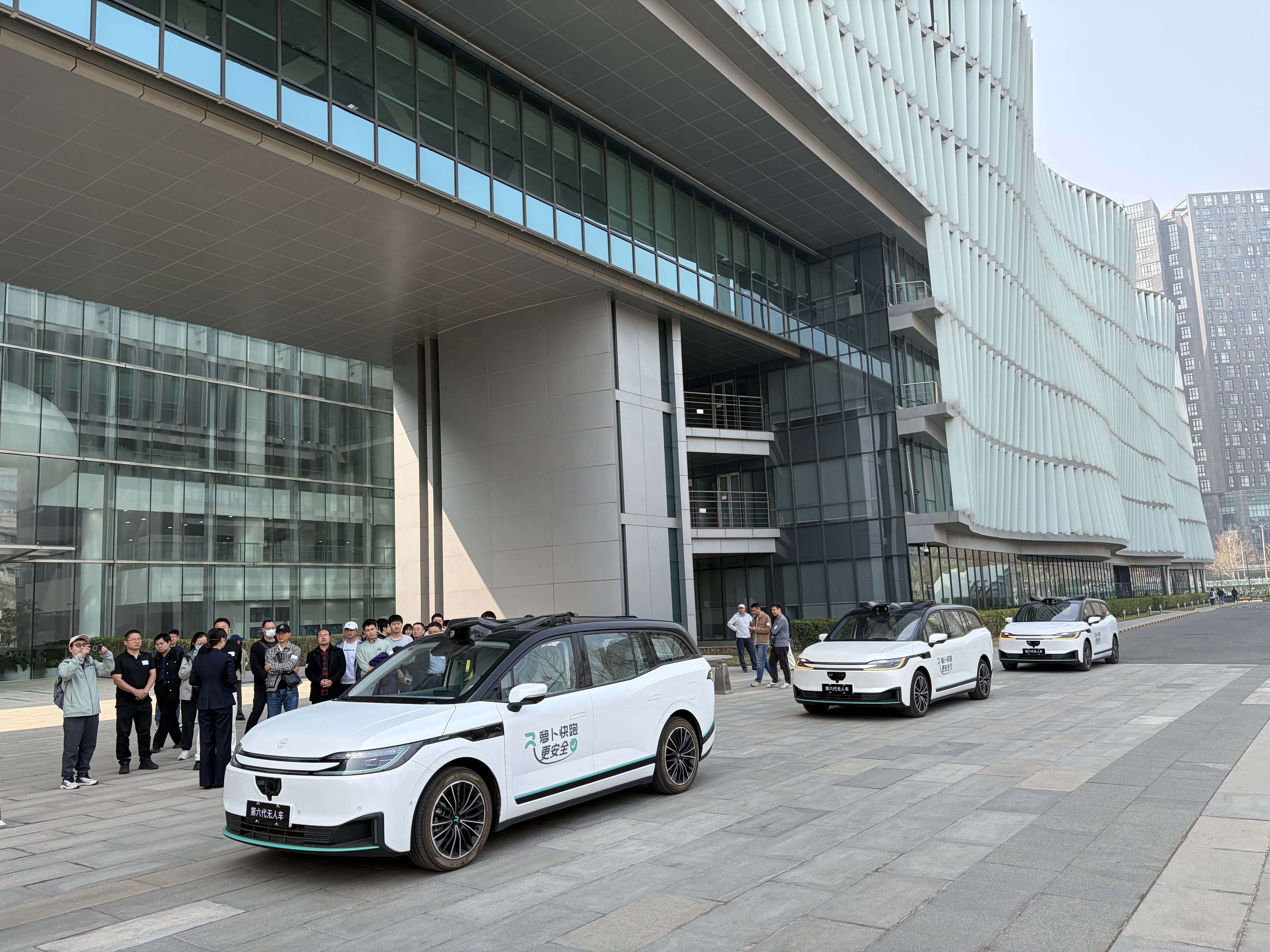 参观展厅后,师生们分批次试乘了百度无人车“萝卜快跑”,亲身体验L4级自动驾驶技术的实际应用。行驶过程中,车辆可精准感知道路状况,平稳完成起步、转向、避让行人和障碍物等操作,全程安全顺畅,对自动驾驶技术的实际应用场景有了更真切的认识。